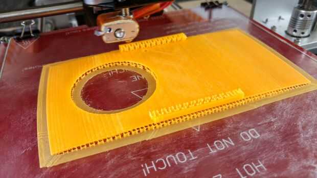 Para imprimir las partes de la dos cubierta deberemos configurar un soporte durante la impresión; también en el caso de eliminar con gran precisión (se recomienda enfáticamente) soporte lado permanecen menos refinado que el lado opuesto. Por esta razón la parte superior debe imprimirse con el lado superior (el lado que sea visible para el usuario) en la parte superior área de impresión.