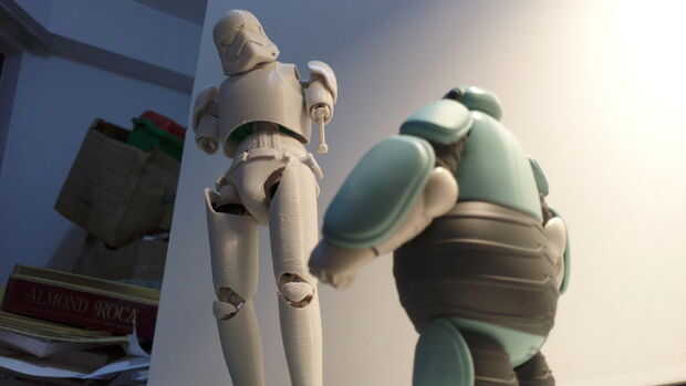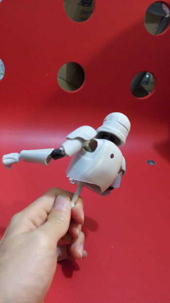 como he mencionado, la impresora en la escuela imprimir algo imperfecto. Si el filamento o impresora le falla un poco, las rótulas no podrían caber perfectamente. Tome un cortador de arte, recorte el exceso lejos si las piezas no encajan. tomar una pistola de pegamento caliente, poner una gota de pegamento caliente en la rótula y frotarla suavemente para agregar una capa delgada. Esto no es perfecto, pero una solución sin embargo. juntas debe ser apretada para trabarlo en su lugar y lograr plantean compleja.