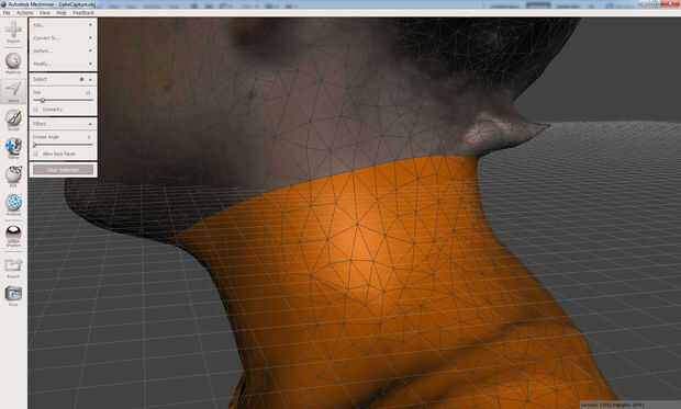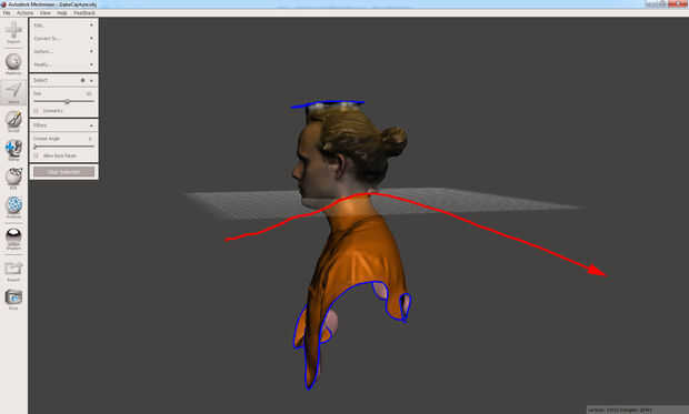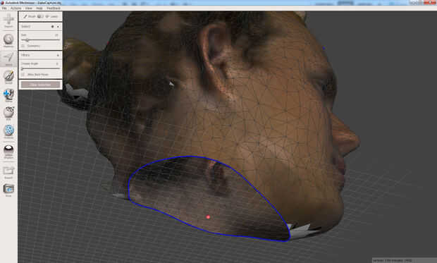 Si usted acerca a la selección (la parte seleccionada es naranja), verá que es irregular en base a la resolución de los triángulos de la malla. MeshMixer esto puede suavizar.