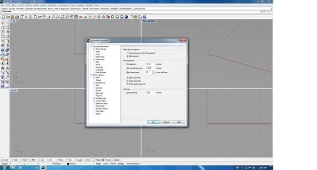 a continuación, desea establecer el tamaño de la cuadrícula y agarre ajustar a algo apropiado para el modelo que se está creando. Para este tutorial, tenía líneas de cuadrícula cada 1/8 de pulgada, con ceñidor principales líneas cada pulgada. El ajuste de línea tiene cada 1/16 de pulgada.