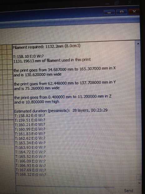 Nota: el nivel de impresión fluctuará poco por encima o por debajo de la temperatura deseada mientras que alcanza los ajustes necesarios. Para la mayoría de las impresiones de máquinas de tipo A encontré 185 a una gran temperatura. El makerbot es usar una temperatura más alta y que necesita ser ajustado cuando impresión thingiverse descargas en una máquina de tipo A.