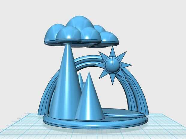 En el modelo 3D, el cielo y la tierra están conectados de manera dimensional 3. Apliqué la imagen de la nube representa el cielo y la montaña está parado para la tierra. Y en el medio hay un arco iris que se pueden conectar el cielo y la tierra, lo que la salida del sol y la caída.