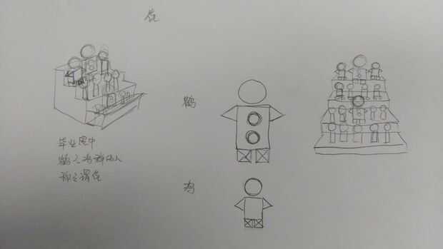 Apliqué a la persona excepcional como mi concepto de diseño. Para expresar, una frase China que un pie de grúa entre pollos viene a mi mente, significa que está parado en hombros de otros. He aplicado un montón de gente que partió de la persona en particular, y por lo tanto uno en la parte superior debe ser el que es excepcional y excelente.