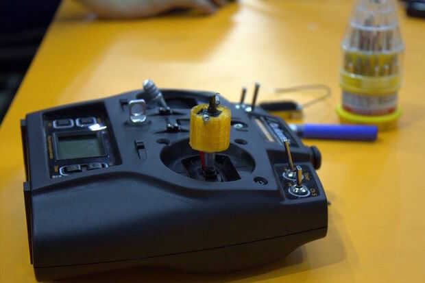 Cuando el 500's stingray video revisión hacia fuera y después de ver el rendimiento Mr.Curtis Youngblood demostró (fenomenal por cierto) con su transmisor modificado conocido como, "Palo solo" (introducción a 3.11 en el video de prueba de Flite) yo estaba como, "Necesito hacerlo mismo con mi transmisor". Empecé buscando cómo hacerlo, convirtiendo su transmisor dos stick en un transmisor de palo solo, pero no podía encontrar nada útil así que abrí mi transmisor (6i RCB aviónica de este tiempo, que en el anterior artículo fue un Avionic 7 x... Tomé cada posible imagen del interior del transmisor desde todos los ángulos posibles, acaso si yo accidentalmente había desconectado cualquier cable o cualquier parte móvil, podría poner en su lugar original... y un camino simple para convertirlo!