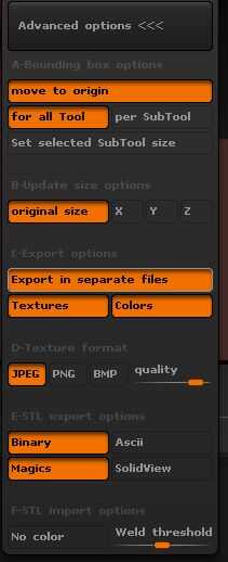 Finalmente, en la sección avanzada de 3D Explorer de impresión, puede exportar un archivo STL cada Subtool.
