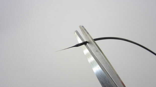 Insertar el filamento: Deslice el filamento en el puerto de entrada de filamento. Si está insertando una pieza usada anteriormente de filamento, recorte el extremo con un par de tijeras para que los plano. Esto ayuda a evitar atascos. Una vez que el filamento se encuentra hasta abajo en la pluma, presione el botón extruir. Debe sentir el motor interno empieza a tirar sobre el filamento.