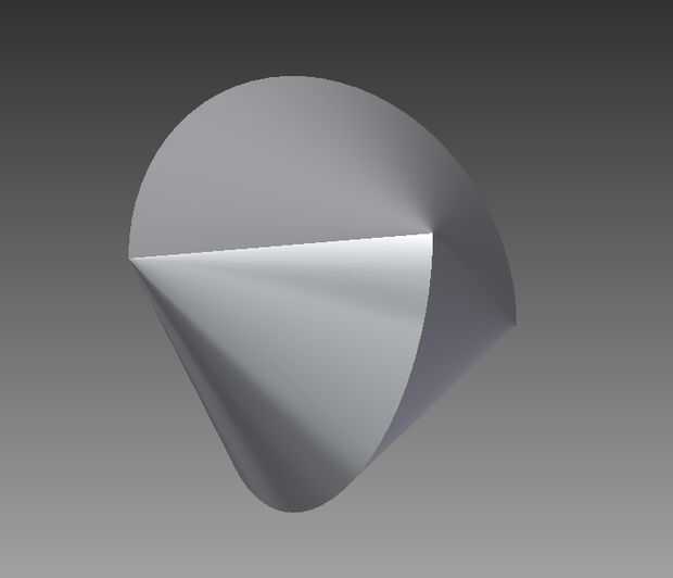 Un "esfericón" es una forma agradable de 3 dimensiones formada uniendo cuatro conos de media. Es un "desarrollable" forma, lo que significa que todas las partes de toquen una superficie plana se enrolla en, y tiene un interesante movimiento tambaleante cuando se rueda. Vamos a hacer la forma por mitades, en Autodesk Inventor.