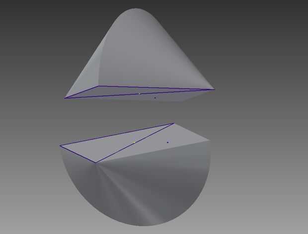 Hacer la otra mitad copiando el sólido que sólo giró. Tenga en cuenta que ambos lados tienen una base cuadrada. Si se acopla la base cuadrada con vértices coincidentes, se podrían obtener dos conos (un "bicono") se ha unido a su base. Pero aquí está el giro: para hacer un esfericón, girar una de las mitades de 90 grados con respecto al otro, por lo que los ápices reunieron los bordes de la base. Mate luego las dos mitades por mantener dos de los bordes cuadrados a ser coincidentes.