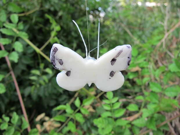 Así que diseñé una mariposa de col 3D en AutoCAD y utilizado STLOUT o 3DPRINT comando para generar un archivo STL para el uso de impresoras 3D. Podría también haber fácilmente diseñado la mariposa 3D y genera una exportación STL 3D de impresión utilizando el software de modelado sólido de Autodesk 123D gratis. Luego lo imprimí en mi MakerBot Replicator y luego lo fija con línea de pesca a un alambre de cobre de 1/8".