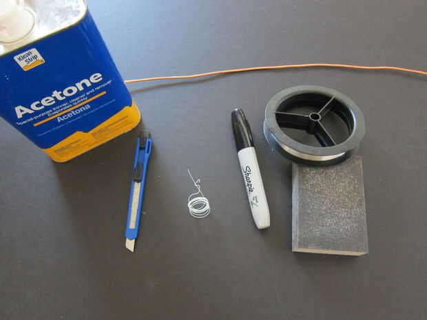 Acetona para suavizar el plástico ABS completo o químicamente soldar las antenas al cuerpo de mariposa (opcional) también puede usar una pistola de pegamento caliente como alternativa.