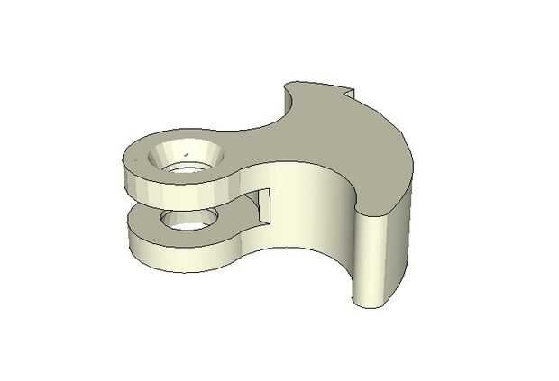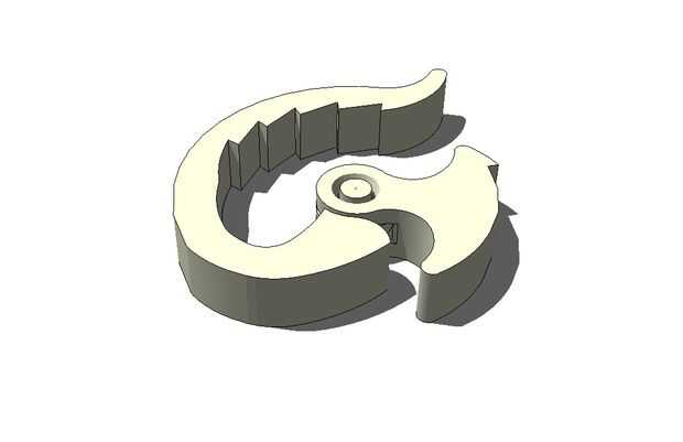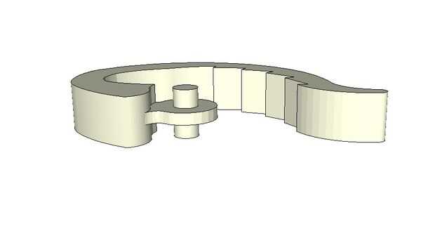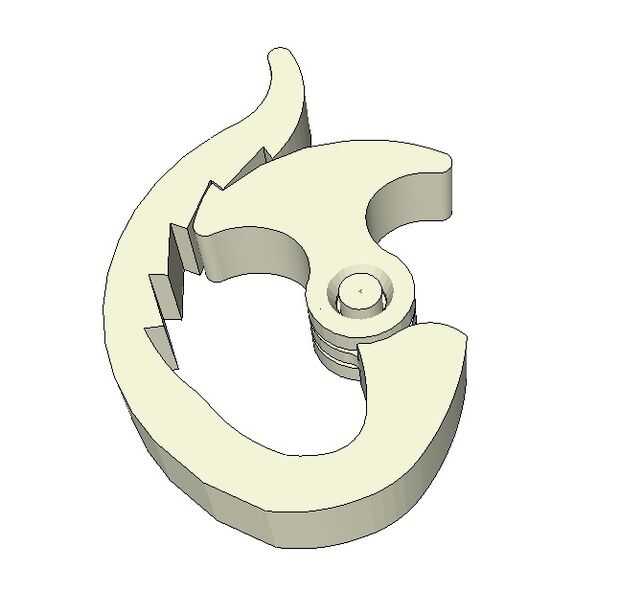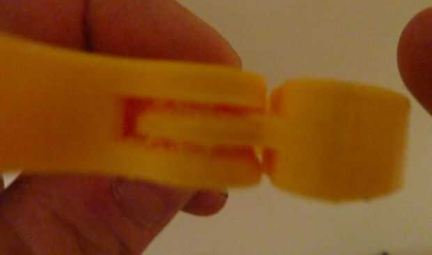 Esta pinza está diseñada para ser impreso con una resolución de .02mm. Cada capa, una vez colocada la impresora es .2mm alto. Como se muestra en la foto, las brechas anchas horizontales en mi ejemplo se llenan de fuzzy pedacitos de plástico suelto que cedió y solidificado dentro del espacio. Una vez endurecido, este plástico caída actúa como soporte para el resto de las capas por encima de la brecha. Y cuando se quita la parte de la impresora, será tan rígido como cualquier objeto impreso, pero la débil conexión entre los filamentos en las lagunas se rompen fácilmente la primera vez que se utiliza la parte y van a trabajar y realizar como diseñada desde ese punto de.