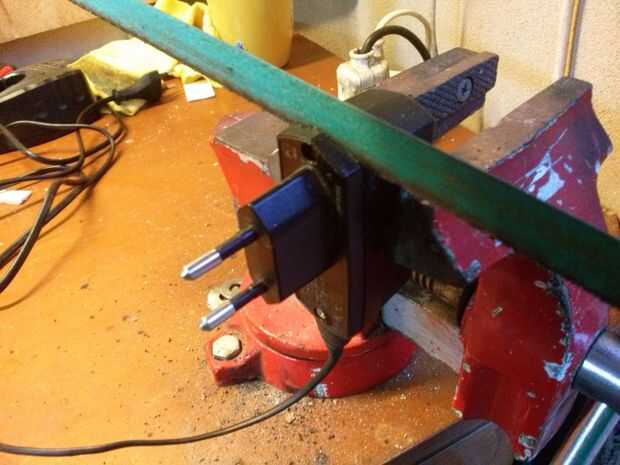 - Puesto que el motor funciona en la red no podemos sólo utilizamos un adaptador exterior de la lámpara, por lo que necesitaremos alimentar con la tensión de red. Sin embargo también necesitaremos 5VDC para la electrónica, para que podamos usar un cargador viejo de celular como nuestro adaptador AC/DC. Personalmente he elegido un viejo cargador de teléfono móvil de Nokia ya que son muy pequeños, que es ideal para nosotros, puesto que nuestra lámpara tiene un espacio limitado para la electrónica, y porque proporcionan una constante 5VDC. Cortar abierto con una sierra (porque no tengo el destornillador adecuado) y la electrónica, ya que es todo lo que necesitamos! Soldar 2 cables para la línea (o fase) y neutro. La salida de CC del adaptador tiene un cable amarillo y negro, positivo y negativo, respectivamente.