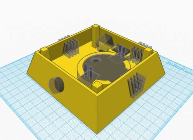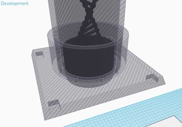 Entonces diseñé una cubierta para la base principal, teniendo en cuenta el hecho de que tenía que haber suficiente espacio en el centro de una plataforma rotatoria que sostendría la hélice del ADN. La cubierta también necesitaría tener pequeños agujeros para el LED de la base:
