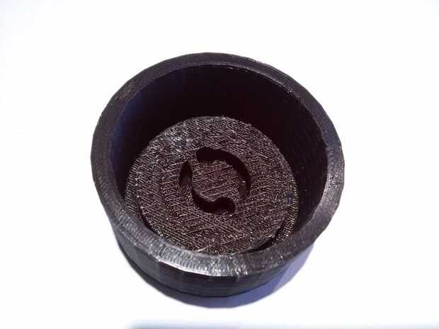 - La "cubierta superior" tiene una parte hueca en el interior, que lo requiere para ser impreso con el apoyo de su posición normal. Por el apoyo he utilizado líneas como el tipo de estructura, relleno de 15%, 5 mm X Y distancia y distancia de 0.4m m Z (se nota las marcas de asistencia en la respectiva foto de arriba).