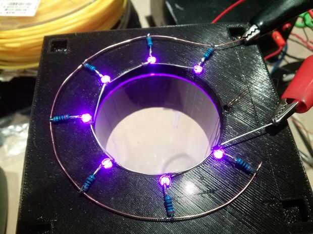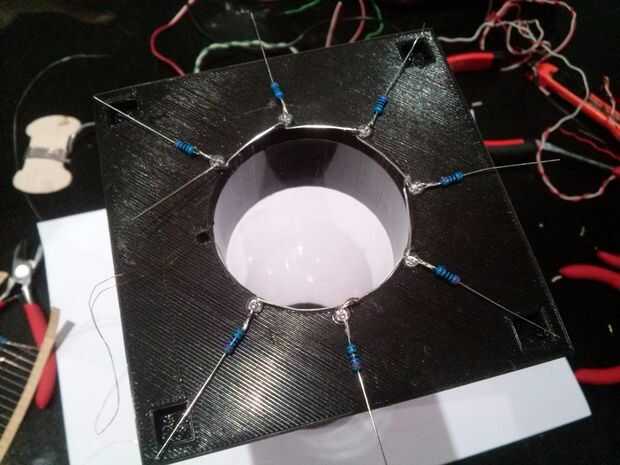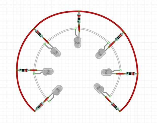 También mantener todo completamente sobre la superficie de la pieza para evitar tener LEDs, resistencias o alambres tocando algún lugar que no deberían.