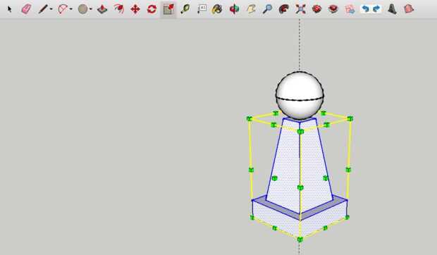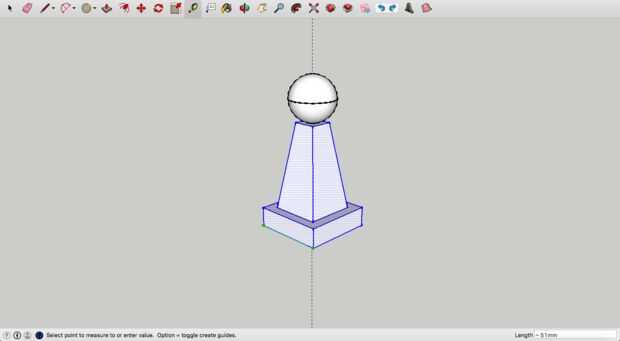 17. y para el trabajo de Sketchup, sólo queda poner el círculo sobre las demás partes del peón con la herramienta "Mover". Más adelante, si desea hacer que el cuerpo del peón más corto o más largo, debe simplemente elegir y construir usando la herramienta "Escala".