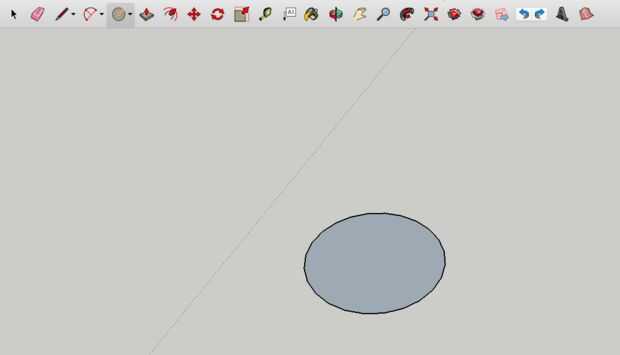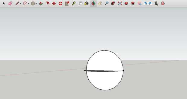 8. usando la herramienta orbitar, girar a su vista, tal ves el círculo casi como la superficie lisa. Luego tomar la herramienta de círculo otra vez y colocar en el centro del círculo (Sketchup te mostrará dónde está el centro) y a continuación, dibujar el círculo hasta llegar a los extremos. Tendrás dos círculos uno encima del otro como la segunda vez que fue vista desde un ángulo diferente.