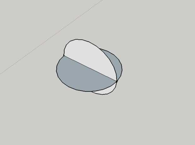 9. dibujar la línea en uno de los puntos donde se unen dos círculos (SketchUp automáticamente extraerá en el otro también).