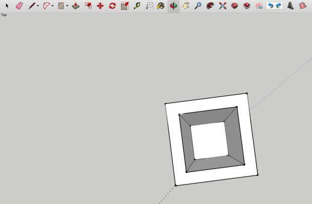 5. Gire la cámara para hacer frente a la Plaza de arriba usando la herramienta de la órbita. Luego, dibujar un cuadrado pequeño imaginario en medio de su gran plaza y mover sus líneas de manera que todas las cuatro terminales de las líneas de los cuatro bordes de la Plaza. Para ello, puede utilizar la herramienta mover, luego agarra el extremo de la línea y llevarlo donde quieras (esto es probablemente la parte más difícil).