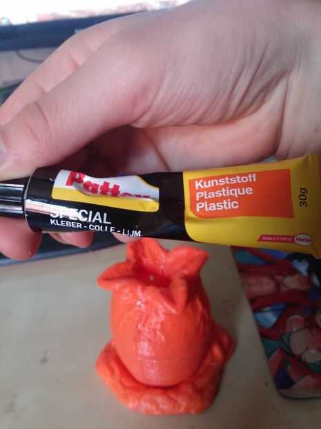 ER werd daarom besloten om deze kleine versie te gebruiken als proefversie, om verschillende dingen op te testen zoals het verven. Het modelo werd autorizada tot acht aparte modellen, die samen het ei vormen. Hierdoor kon er op meerdere Ref worden geprint om als nog een groot IE uiteindelijk uit te Kunnan printen. Vervolgens werden de acht stukken aan dirección gelijmd met behulp van een lijm speciale voor kunststof van Pattex. Het es nu uitgeprint, en la dirección gezet en heeft de gewenste grootte.
