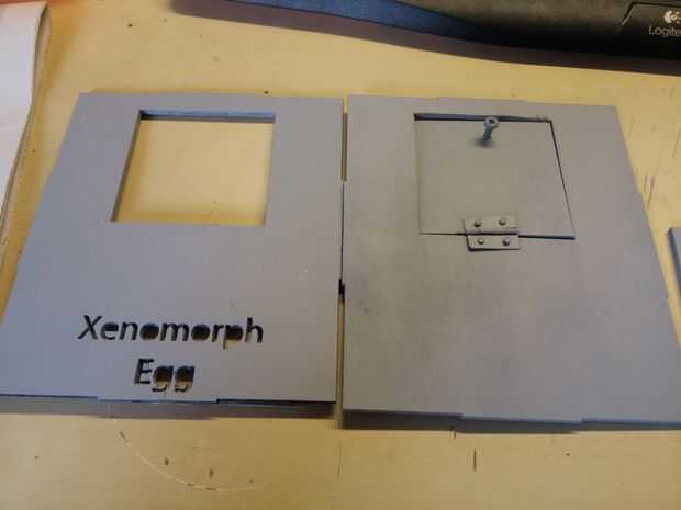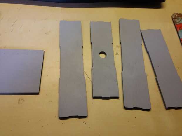 Na het uitsnijden van de piezas, Möst alles behandeld worden met een verfprimer. DIT zorgt ervoor dat je na de primer makkelijker op je objecten kan schilderen. Hierdoor hoef je geen zeven lagen te verven. Een primer es gewoon te halen bij elke verf/bouw winkel voor ongeveer een tientje als spuitfles. ER werden lagen twee opgebracht met een ruime tussentijd tussen het opbrengen van de lagen. Hierdoor konden de lagen goed drogen. Het aanbrengen van de primer moet het liefst buiten gebeuren de en een goed geventileerde ruimte!