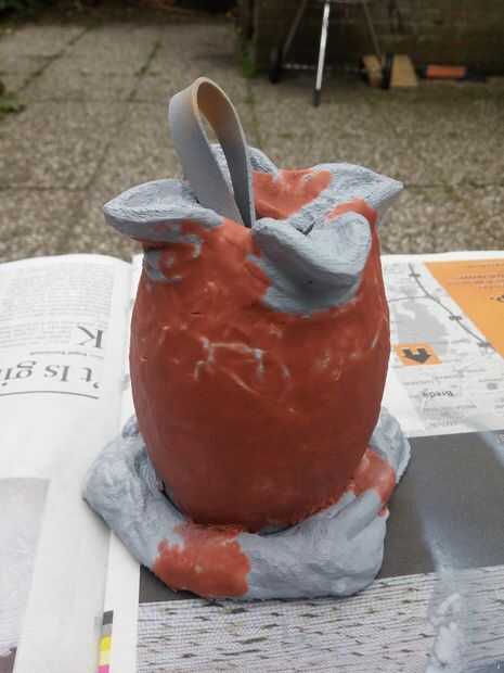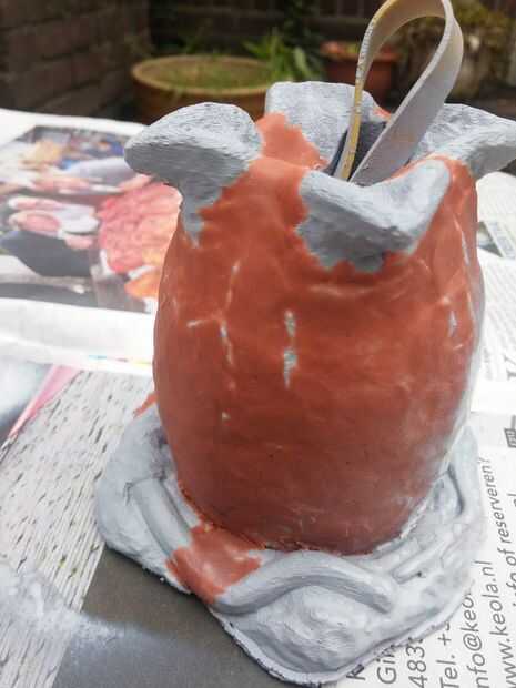 Op het modelo 3D werd eerst klei aangebracht om zo de spleten en het modelo te verbergen. DIT fue gewone goedkope juguetes klei. De klei werd en dunnelaagje op gebracht. De spleten waren hierdoor niet meer te zien. Hierna werd ook op het modelo 3D werd de primer aangebracht.
