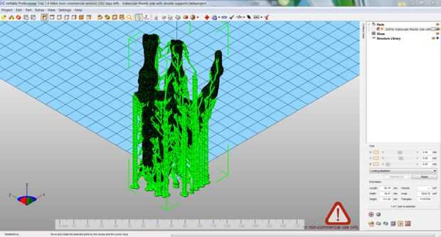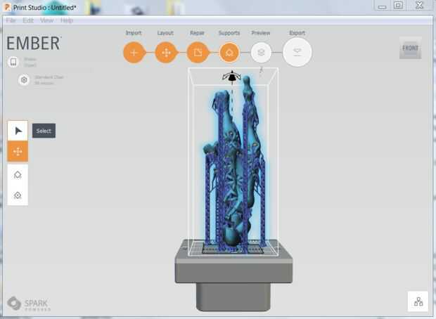 Una vez que el diseño es creado y procesado hasta el nivel celular, la geometría debe estar preparado para la impresión 3D en la brasa. Esto requiere añadir apoya a su modelo, corte y agregando información de configuración de impresora luego empaquetado todo y enviarlo a la impresora 3D.