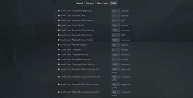 - Elegir o ajustes de entrada para el material que va a imprimir en. Usé un hidrogel PEGDA.
