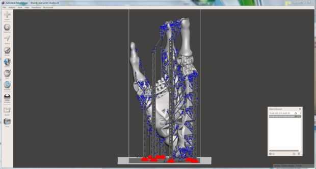 MeshMixer, Print Studio o Netfabb puede usarse para sanar y auto generar o agregar manualmente apoya al modelo.