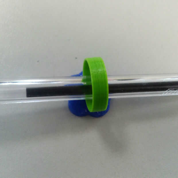 El final es bastante fácil. Poner su cara de flor hacia abajo en un escritorio, alinee el anillo por encima de él con el conector hexagonal en la alineación, luego usar un lápiz a través del anillo, presione hacia abajo la pluma hasta que encaje en su lugar.