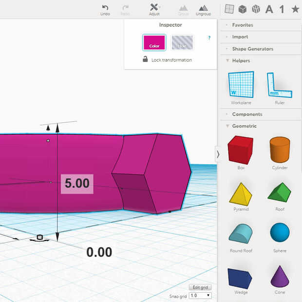 Continuación debe girar el modelo para que el lado de 5mm de prisma hexagonal está parado verticalmente con un borde plano en la parte inferior. Esto empuje debajo del suelo, así, modificar la distancia vertical de un número menos 0.