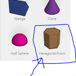 Recomiendo usar una forma de hexágono como se imprime bastante bien y evitará cualquier movimiento de giro. Para crear un prisma hexagonal siga los pasos siguientes de la barra lateral: