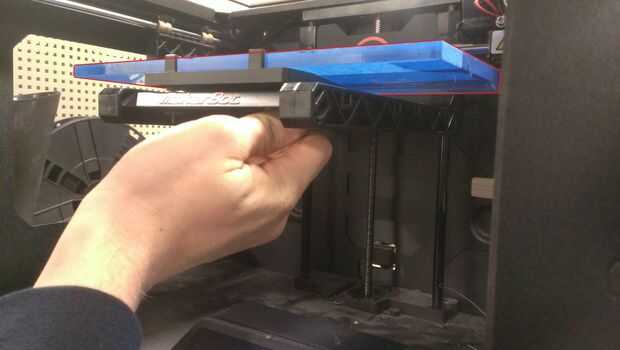 Antes de empezar tu impresión es una buena regla para nivelar su estructura la placa (la placa está resaltada en rojo). Ir a Utilidades > nivel construir la placa en el menú principal. Seguir las indicaciones que se presentan. Usted necesitará ajuste 3 botones debajo de la placa cada vez que el la cabeza de la extrusora se mueve a una posición diferente. Entonces, el objetivo es pasar un pedazo de papel cartulina (o papel grueso similar) entre la cabeza de la extrusora y la placa de construcción sin mucho esfuerzo, sino también la cabeza del estirador tan cerca como sea posible.