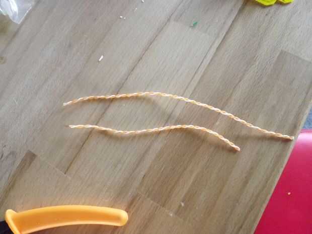 Encontrar 4 hilos aproximadamente de 100mm de largo. Usé una broca vieja de alambre del cable Cat6.