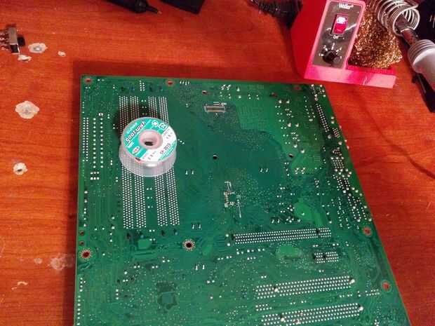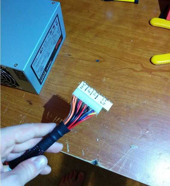 Siempre es una buena idea para conseguir todo junto antes de comenzar a trabajar en un proyecto. Lograr que el conector ATX de 24 pines de la placa base era una tarea desagradable. Componentes de la computadora generalmente uso soldadura libre de plomo que se funde a una temperatura mucho mayor que el convencional de la soldadura, así como irradia calor más rápidamente, haciendo muy difícil el sacarlo. He probado usando una mecha de desoldadura, pero no mucho. Terminé de quitar como mucho soldadura posible utilizando una bomba de desoldar y luego simplemente levantándola. Desafortunadamente, esto dio lugar a un puñado de pines de interrupción, pero por suerte lo suficiente de la tierra y pines de voltaje, así como el pin de encendido/apagado, quedaron intactos.