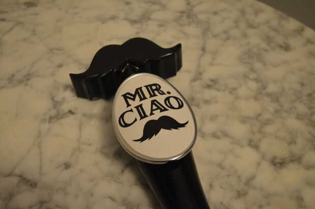 Mi buen amigo recientemente abrió un restaurante italiano Pizza & Pasta y el nombre de Sr. Ciao (el restaurante está realmente en el barrio chino, zona de la ciudad por lo que el nombre es un poco de un divertido juego en palabras). El logo para el restaurante es el nombre con un gran bigote "Italiano" tupido. Tienen un montón de cervezas de barril (así como rojo y blanco vino y una sidra). También tienen una cerveza de "casa" en el grifo, no hacen ellos mismos pero se vende con un descuento y puede cambiar de vez en cuando. Pero como cualquier marca de cerveza una manija de grifo para que los clientes podrían ver lo que estaba disponible. Como obtienen mayoría cervecerías lujo con sus grifos de cerveza que queríamos nuestro grifo reposar fuera tanto como sea posible. Pensamos que la mejor manera de hacerlo sería incorporar el logo de bigote prominente como sea posible.