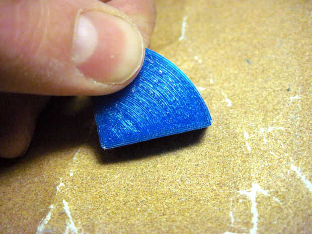 Mi impresora tiende a hacer que las partes inferiores de las piezas un poco gruesas - yo he jugando con la configuración para encontrar un buen valor para esa primera capa obtener piezas planas. Lo que terminé haciendo fue lijar los bordes de las piezas al principio con papel de lija de grano 200.