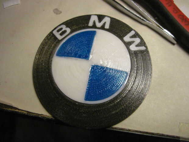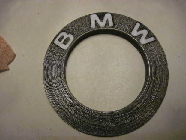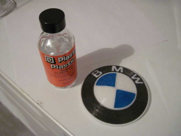 Ahora es tiempo de poner las piezas juntas. Empecé con la B de la BMW, tiene dos piezas negro pequeño que se sientan en medio de la carta blanca. Pinzas son útiles para forzar las piezas en el centro de la carta, si el ajuste es muy apretado, luego arena hacia abajo los rellenos más.