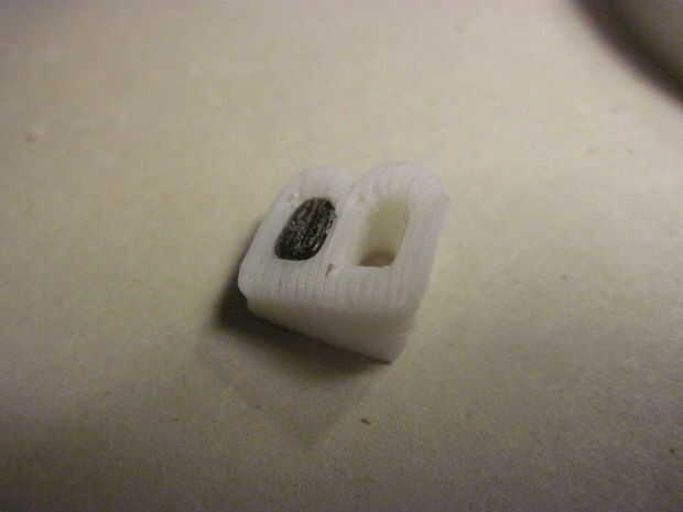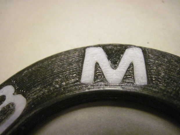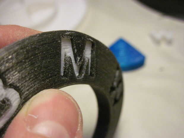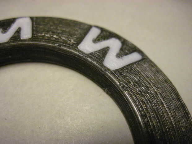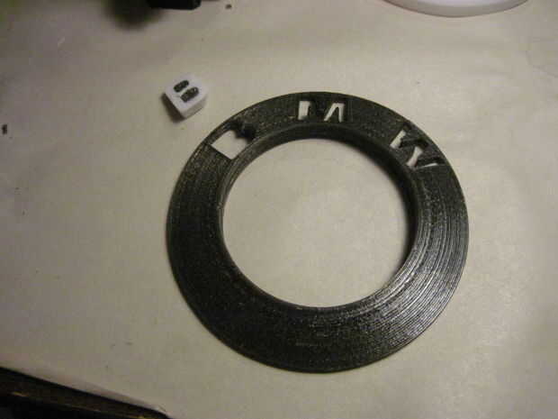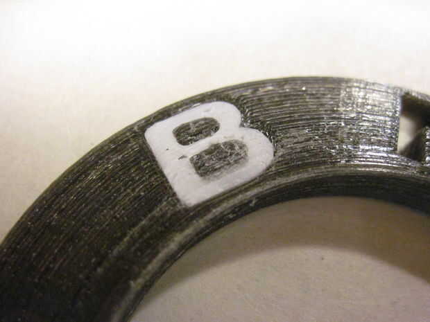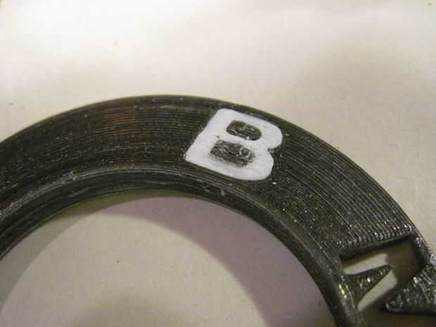Después de eso, he insertado el B en la parte superior negra del redondel. Las otras letras vinieron pronto después sin embargo, era necesario lijar un poco más antes de que encajaría perfectamente en la pieza superior negro. Te recomiendo insertar desde la parte posterior de la pieza, en vez de desde la parte delantera.