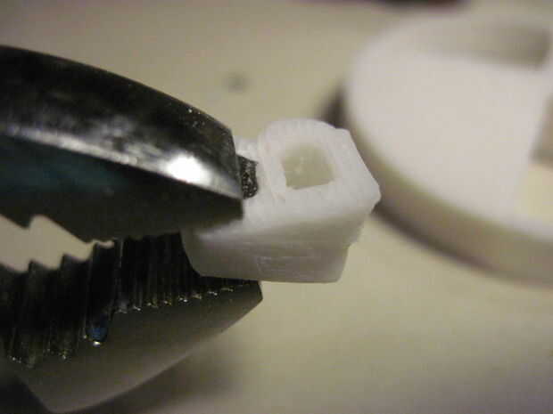 Después de todo de la Asamblea, puse algunos acetona sobre papel absorbente y difundirlo por toda la parte (rápidamente, o el ABS será pegajoso). Acetona hará ABS muy brillante, y también hace que partes PLA tiene un lustre menos pronunciado. Me gusta la mirada y el pensamiento que encajaría bien con esta parte.