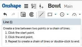 Si eres nuevo en Onshape, te sugiero jugando primero con algunas de las herramientas y opciones. Lleva un tiempo acostumbrarse a trabajar con varios planos! Después de sentir un poco más cómoda, puede comenzar a crear su tazón de fuente. Empezar por crear un nuevo dibujo en el plano superior. Entonces, dentro de este esquema, tenemos que crear una línea básica. Esta línea va a representar el diámetro de la taza, así que como largo o corto como usted necesita.