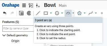 Ahora que tienes tu línea, crea un arco de 3 puntos. Haga clic en los extremos primeros y segundo de su línea previamente dibujada. Determinar el radio colocando el último punto de la guía a lo largo de la línea.