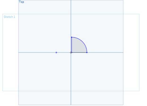Ahora que tenemos un medio círculo, necesitamos un círculo cuarto. Dibujar otra línea desde el punto medio de la línea de fondo a la parte superior del arco. Utilice la herramienta de recorte para eliminar las secciones de un lado del arco curvadas y planas.