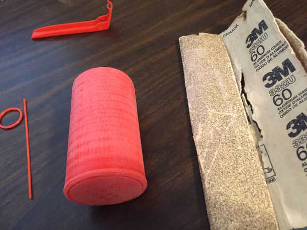 Coloque el Clip y la palanca de junto y perfore el orificio más grande. Ahora se pueden lijar todas las piezas excepto el pin. Tener cuidado! La palanca tiene 2 piezas muy frágiles. Así que cuando se lije, trate de no romperlas! Si rompe sin embargo, la bomba de humo no se ven muy diferente, y que todavía funciona. Una vez que las piezas a la consistencia deseada, usted puede encajen todos (excepto el pin y el anillo) como se muestra en el cuadro 5. ¿Hay algo malo con él? ¡ Sí! la palanca es recta! deben ser doblado. Es para el siguiente paso.