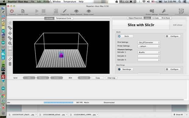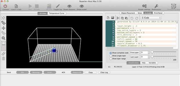 Vaya a la ficha de la máquina de cortar y golpear la rebanada con el botón de la máquina de cortar, esto debe tomar alrededor de 2 - 5 minutos basan en que la configuración de la impresora. Una vez que finalice el proceso veremos la sección de código de G poblada