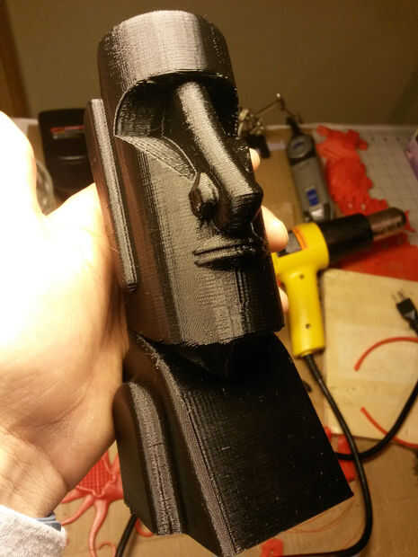 Sé lo que estás pensando. No piedra impresión 3D... al menos no todavía. Mi plan era a 3D imprimir mi objeto y darle el acabado de piedra más realista podría administrar. Por supuesto, el primer paso fue hacer la impresión. Después hurgando en Thingiverse encontré bastantes versiones de estas cabezas de moai. Este fue mi favorito debido a la mirada más limpia, aunque sea un poco menos realista.