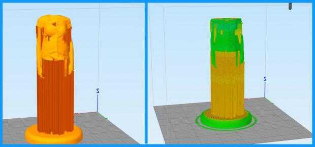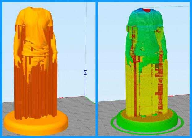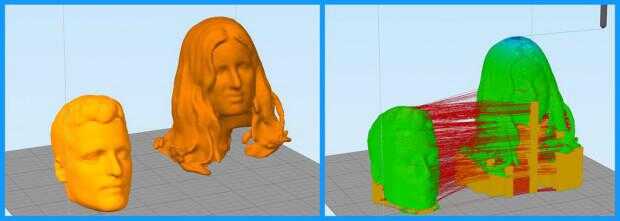 Hice 3 impresiones separadas. Dos para cada cuerpo y otro para las dos cabezas. A continuación, puede ver 3 imágenes antes y después de rebanar en Simplify3D.
