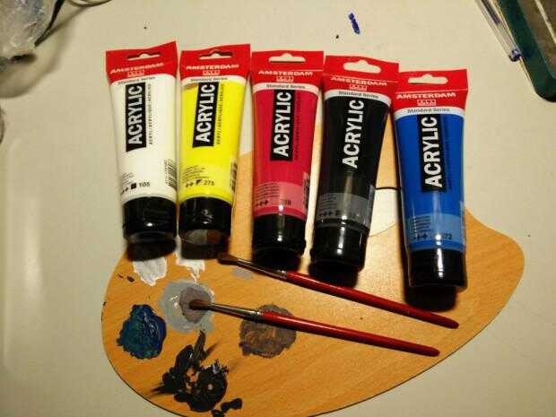Para la pintura necesita solo un cepillo y un conjunto de pinturas acrílicas (enlace).