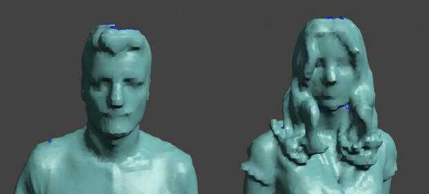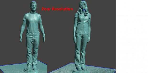 Estas imágenes de abajo muestra el resultado final exportado de Skanect para mi modelo y modelo de mi novia. Puedo decirles ahora mismo que estas exploraciones son horribles. Muy mala calidad, resolución. Estos modelos sólo funcionarán si usted imprimir una versión super mini, no es exactamente lo que quiero.