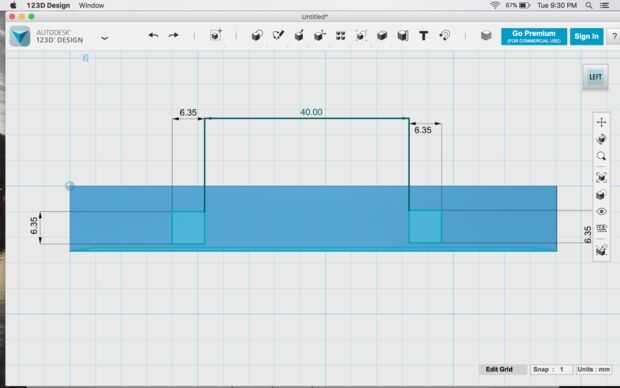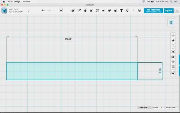• A continuación, editar las dimensiones que cada rectángulo se convierte en un cuadrado de 6,35 mm x 6,35 mm.